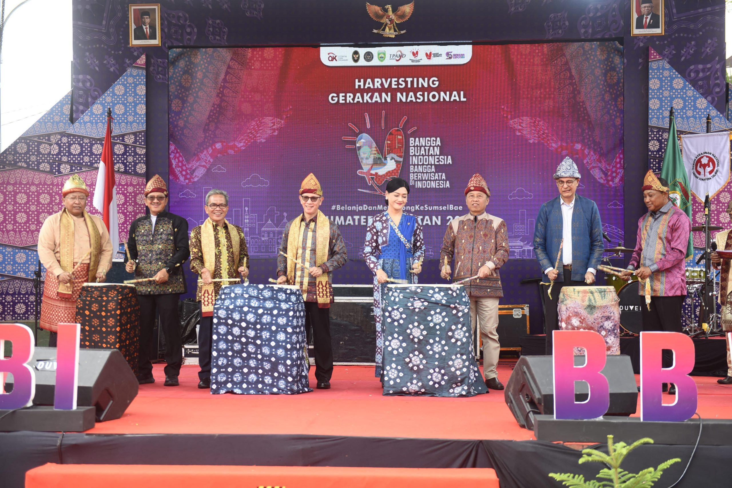 Palembang. Pemerintah Provinsi (Pemprov) Sumatera Selatan bersama Otoritas Jasa Keuangan (OJK) bersinergi menggelar Harvesting kegiatan Gerakan Nasional Bangga Buatan Indonesia dan Bangga Berwisata di Indonesia (Gernas BBI/BBWI) di Provinsi Sumatera Selatan. Kegiatan ini dibuka langsung oleh Penjabat (Pj) Gubernur Sumatera Selatan (Sumsel) Agus Fatoni yang diwakili oleh Sekretaris Daerah (Sekda) Sumsel SA Supriono di Halaman DPRD Provinsi Sumatera Selatan, Palembang, Sumatera Selatan, Minggu (26/5/2024).